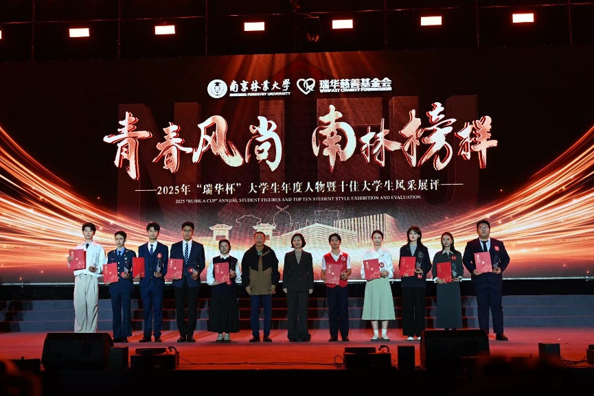 10月28日晚,2025年南京林业大学"瑞华杯"大学生年度人物暨十佳大学生风采展评活动在白马校区体育场举行。校党委副书记缪子梅,副校长张晓琴、赵剑锋、...
