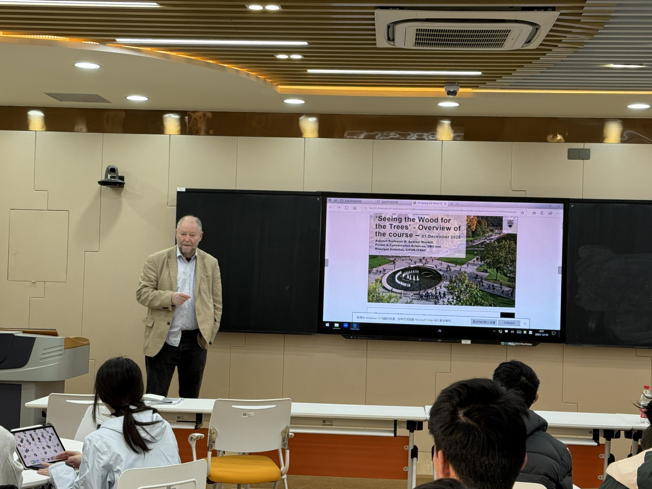 2025 年秋季学期,加拿大不列颠哥伦比亚大学(University of British Columbia,简称 UBC)林学院陆续向我院选派3名资深外籍教师,为中外合作办学项目 2022 级本科生开设 3 门全英文课程。其中,国际著名森林育种专家 Yousry A. El-Kassaby 教授为林学专业学生讲授《高级林木遗传育种学》;UBC 兼职教授、国际林业研究中心/世界农林中心(CIFOR/ICRAF)首席科学家 Andrew Wardell 博士为木材科学与工程专业学生开设《木材专业英语写作》;UBC 生物制品研究所高级研究员 Ran Bi 博士主讲《木材化学》。